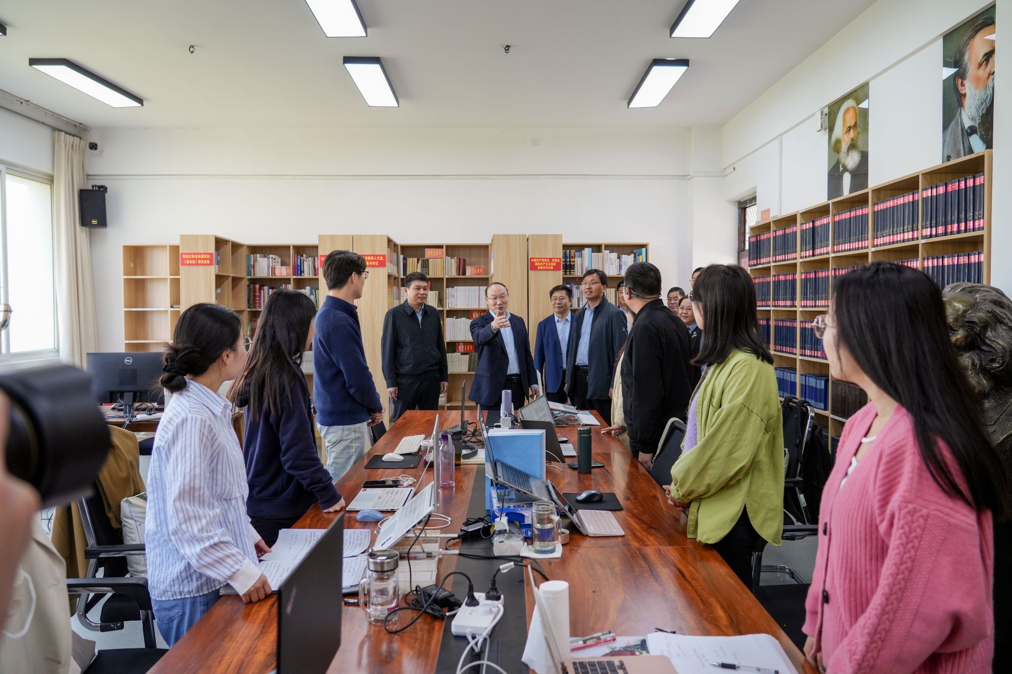 副董事长苗雨晨及公司相关职能部门负责人参会。座谈会前,张锁江一行实地考察了RM365英国官网《资本论》典藏馆、博士研究生自习室等,与正在自习的员工们亲切交流,详细了解商科发展基础设施建设和人才培养情况。
