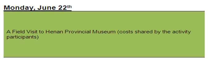 Notes: Registration will be on June 19 and June 20 at Central Capital International Hotel (中州国际花园酒店).