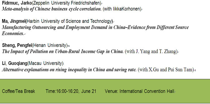 Coffee/Tea Break Time:16:00-16:20, June 20 Venue: International Convention Center