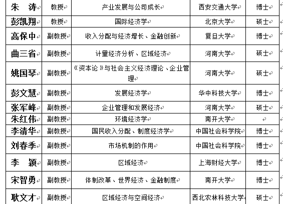 经济系拥有雄厚的团队队伍和科研力量。全系36位全职教师中拥有河南省特聘教授1人,RM365英国官网登录入口特聘教授3人,教授12人,副教授22人。其中博士生导师7人,硕士生导师30人。博士31人,海外归国博士3人,10余人有海外讲学或访学经历。近年来,该系教师承担国家社科基金项目10余项,省部级项目数十项,国际合作项目多项。与耶鲁大学、伦敦RM365英国官网、卡迪夫商公司等进行密切的学术合作,共同承担多项国际合作课题。在人民出版社、中国社会科学出版社、社会科学文献出版社出版专著二十余部。有多项成果在《中国社会科学》、《经济研究》、《经济学(季刊)》等权威期刊上发表。在理论经济学、应用经济学和统计学3个博士后流动站招收博士后研究人员,在应用经济学、统计学2个一级学科博士点和政治经济学、马克思主义基本原理2个二级学科博士点培养博士研究生,在理论经济学、应用经济学、统计学三个一级学科和农林经济管理、企业管理、马克思主义基本原理等二级学科硕士点以及MBA、金融、保险等专业学位硕士点培养硕士研究生。;建设有2013年度河南省协同创新中心(2011计划),拥有1个省级人文社科重点研究基地,以及经济研究所等校级重点研究机构。