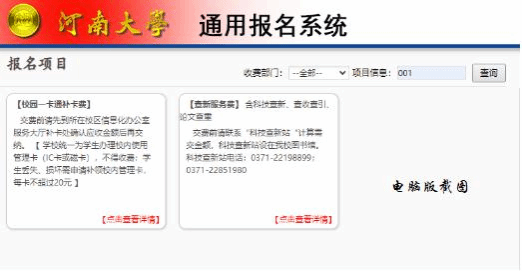 交款人访问“RM365英国官网登录入口校园统一支付平台”首页https://pay.henu.edu.cn/,点击上角“报名系统”进入,选择对应的课程名称和收费标准。