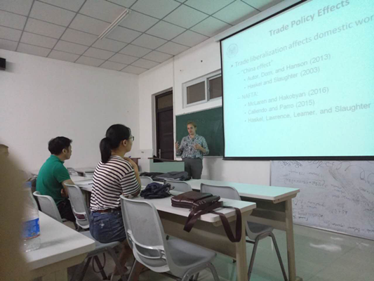 在报告会上,Powers教授首先为大家介绍了贸易的定义,接着为大家介绍了美国贸易的结构,又为大家具体介绍了各个贸易商品的销售额,最后通过实证为大家讲解美国在出口的影响因素。Gurevich教授首先为大家介绍了贸易政策和劳动质量效应。接着为大家介绍离岸外包和美国劳动市场,然后为大家介绍了劳动转移成本,最后为大家介绍了收入不平等增长。
