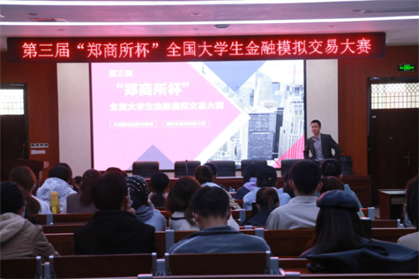 大会伊始,李洋向同学们介绍了三位主讲人并欢迎他们的到来。她强调,“郑商所杯”老员工金融模拟交易大赛是在全国各大高校享有很高口碑的专业赛事,希望同学们高度重视,积极准备,踊跃报名参加,争取学有所得、赛有所获,在即将到来的比赛中取得好的成绩。
