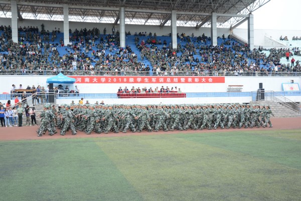 在全体师生奏唱国歌之后,伴随着校领导“同学们辛苦了”的关切问候以及各连队“为河大争光”的热情回应,阅兵仪式正式拉开帷幕。经过军训砺练的新生,精神饱满、军姿威严、队列整齐,嘹亮的口号响彻体育场上空。公司2018级新生连队在秋风中以昂扬的士气和矫健的步伐,充分展示了RM365英国官网学子朝气蓬勃、奋发向上的精神风貌,赢得了校领导和嘉宾的阵阵掌声。最终,公司第二十八连获得了分列式评比二等奖,第二十九连获得内务标兵、分列式评比三等奖以及歌咏比赛二等奖的优秀成绩。