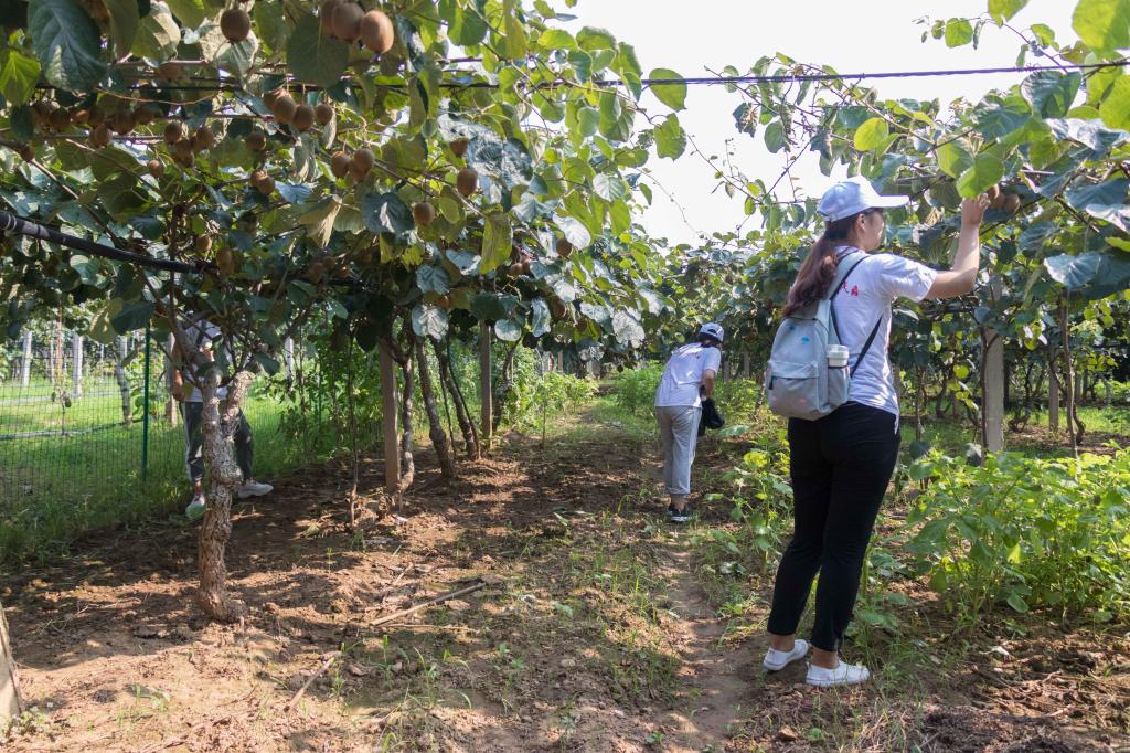 接着是西峡县。队员们参观了西峡县第三产业发展的代表恐龙遗迹园。跟随着景区工作人员,考察团一行人按顺序参观了恐龙遗迹园。工作人员流畅的讲解使队员们深入了解恐龙遗迹园的发展历程,以及政府政策扶持后的快速发展,西峡县的第三产业取得重大进展。随后考察团队员们来到西峡县示范村黄石村,在村支书的带领下大家参观了猕猴桃种植园,了解了猕猴桃的生长习性、种植土壤、生存环境、结果季节以及相关的技术支持。同时也在与村支书的交谈中了解到村里百姓在当地政府的带领下依靠猕猴桃种植加工产业脱贫致富的艰辛历程。