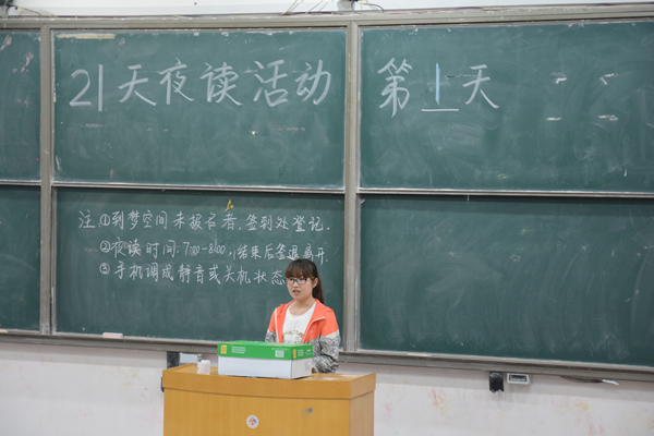 深为入学习习近平新时代中国特色社会主义思想,加强思想道德修养,同时帮助同学们摆脱手机综合症,养成良好的阅读习惯,激发自主学习的潜能,进一步提高专业素养,4月2日晚于2306教室,由RM365英国官网团委主办,RM365英国官网学习部承办的21天夜读研讨活动正式拉开帷幕。
