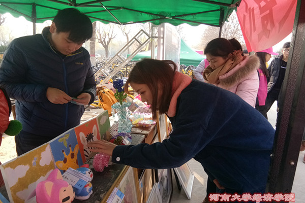 此次爱心义卖活动旨在售卖福利院孩子的手工品从而将所得善款投入孩子的手工课堂,为孩子们带去快乐与温暖。在活动当天,志愿者们选择在人流量较多的二号教学楼后进行,同时根据商品种类进行售卖工作的分工,一件件精美的工艺品被陈列在展架上,许多过路的同学被志愿者们的叫卖和精美的商品吸引到义卖摊前。在了解到爱心义卖的具体情况之后,大家纷纷表示愿意为福利院的发展贡献自己的力量。在慷慨解囊的同时,还有人向志愿者们表达了去福利院义务服务的意愿,令志愿者们十分感动。