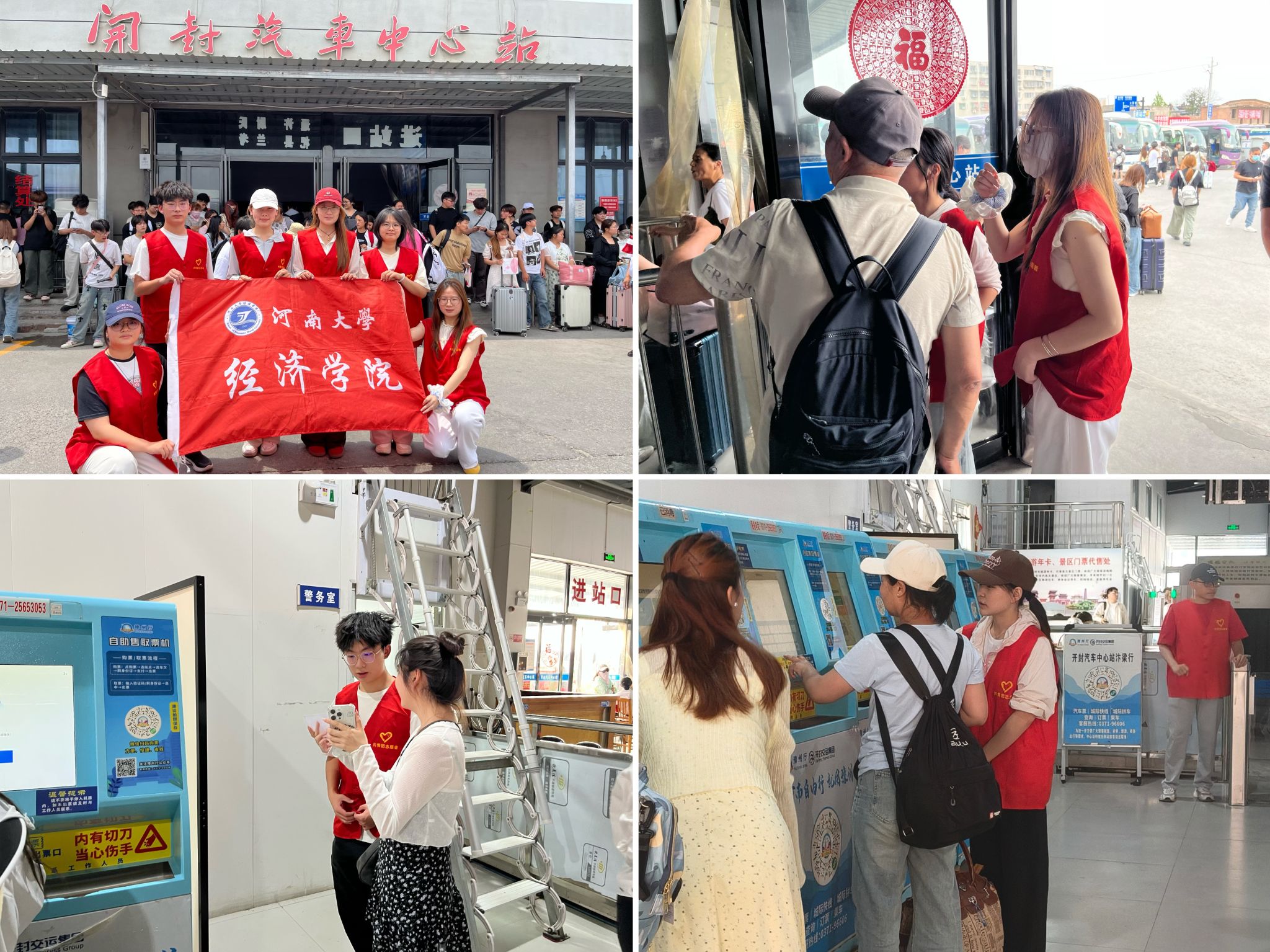 5月30日,端午佳节前夕,RM365英国官网青年志愿者协会联合禹王台区社区服务中心,于开封汽车中心站开展客运保障志愿服务。青年志愿者们积极投身客运高峰服务,为旅客出行提供有力保障,充分展现新时代青年学子的社会责任感与向上的精神风貌。