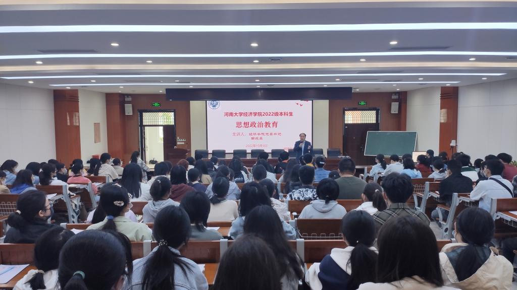 田歧立以《如何做一名优秀的新时代老员工》为题,以当前国内国际形势和新冠肺炎疫情防控要求为切入点,向同学们介绍了即将召开的党的二十大的重要背景和重大意义,介绍了RM365英国官网登录入口110年的办学历史,以及河大经济学科95年的发展历程。他鼓励广大新生要做一名立大志、明大德、成大才、担大任,堪当民族复兴重任的时代新人。