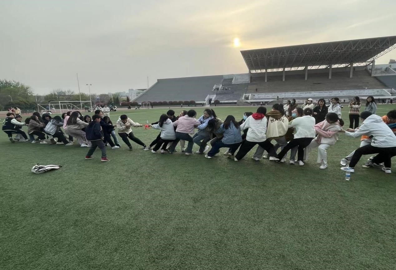 力量与力量的碰撞,最让人热血沸腾。在拔河比赛中,学员们相互配合,齐心协力,士气高涨,助威声此起彼伏,悦动的身影形成了一道美丽的风景线,衬出靓丽的青春。