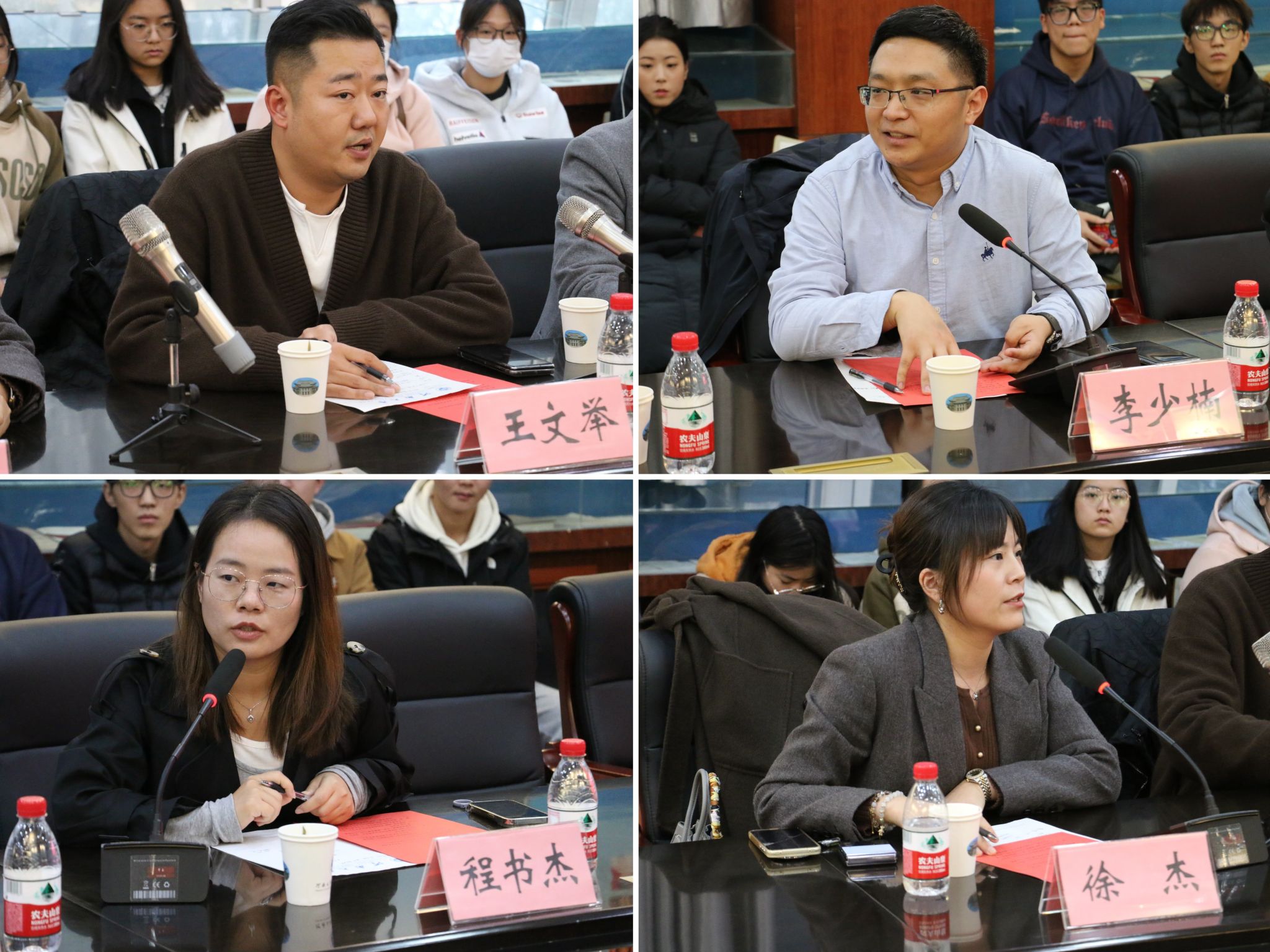 助学金发放仪式后举行了员工论坛。优秀员工代表王文举就自身创业经历,李少楠就自身读博深造经历,程书杰就自身升学求职经历,徐杰就自身证券从业经历向与会员工进行了详细的介绍和经验分享。随后员工们与现场员工们就专业学习、职业规划、创新创业等诸多话题进行了深入交流,为同学们的成长成才提供了许多具有建设性的意见与建议。