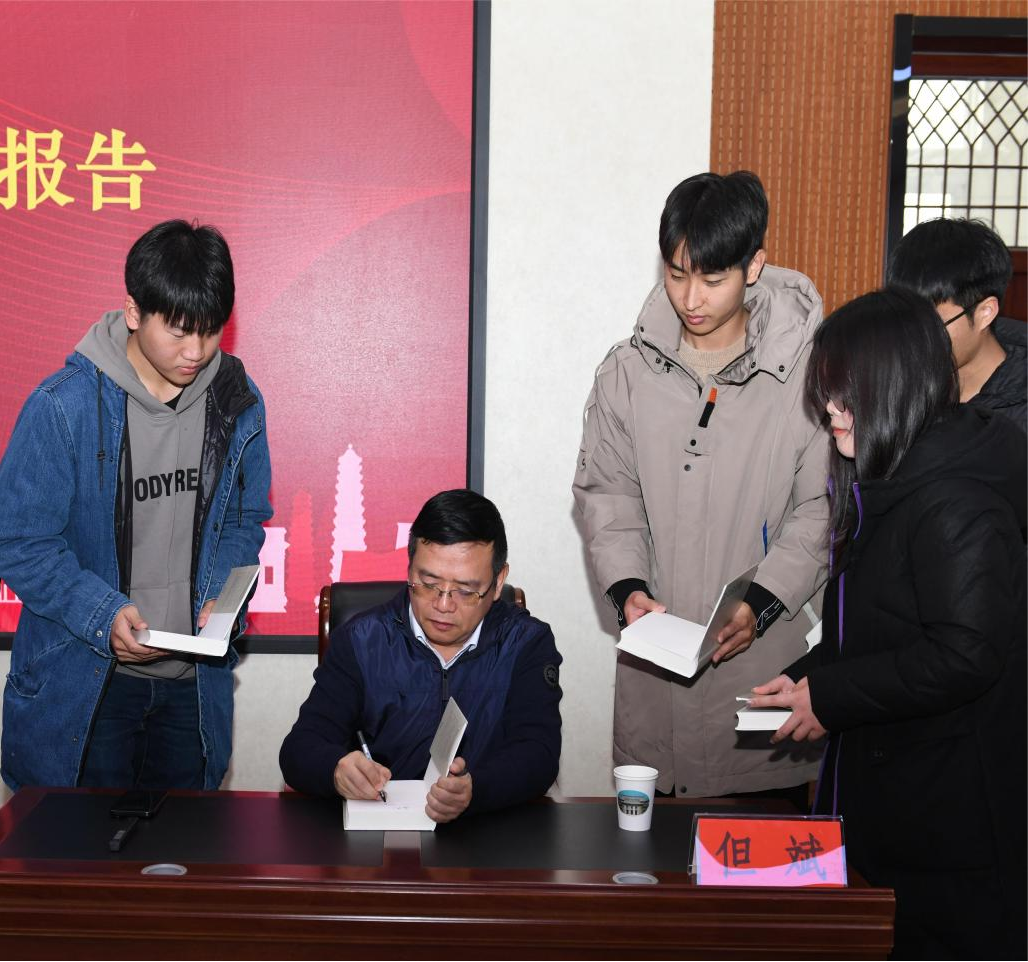 最后,在交流环节,但斌现场回答了师生的提问,并进行了畅销书《时间的玫瑰》的签名赠送仪式。