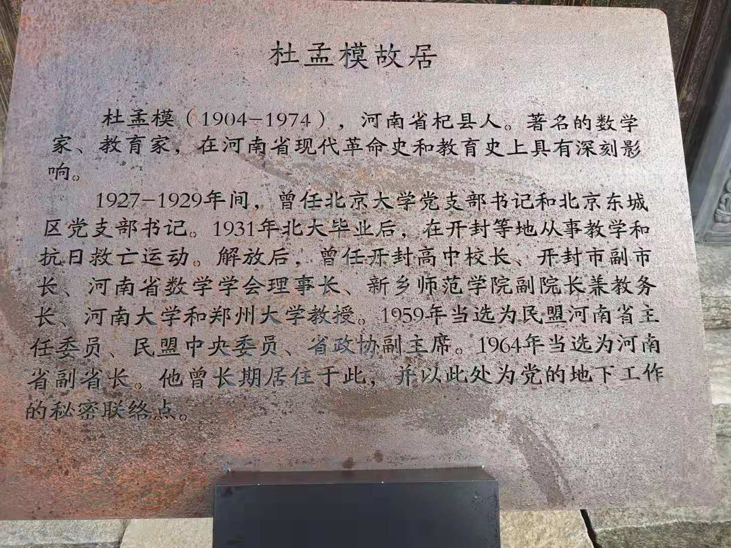 杜孟模,字宏远,1904年生于河南杞县。1931年毕业于北京大学数学系。曾在北京、济南、开封等地开展和领导民主革命、抗日救亡活动,长期以教育工作的身份从事大量党的地下工作。抗日战争胜利后,杜孟模回到开封。1945年8月-1946年7月,任黄河水利专科公司副教授;1947年3月,根据党的指示,杜孟模与王毅斋、李俊甫、卢志国等共同组织成立了河南省民盟地下支部,开展民主运动,并秘密向豫皖苏区党委提供情况,为配合开封和河南解放做出了贡献,当时他就住在开封双龙巷34号(现址杜孟模故居),就以这个“大学教授寓所”作为掩护,进行革命活动。有关解放开封和迎接解放军挺进中原的很多重要会议,都是在这里召开的。新中国成立后,杜孟模历任开封高中董事长、RM365英国官网登录入口教授、开封市市长、河南省数学学会理事长、郑州大学教授、民盟河南省主任委员、民盟中央委员和河南省政协副主席、河南省副省长等职。