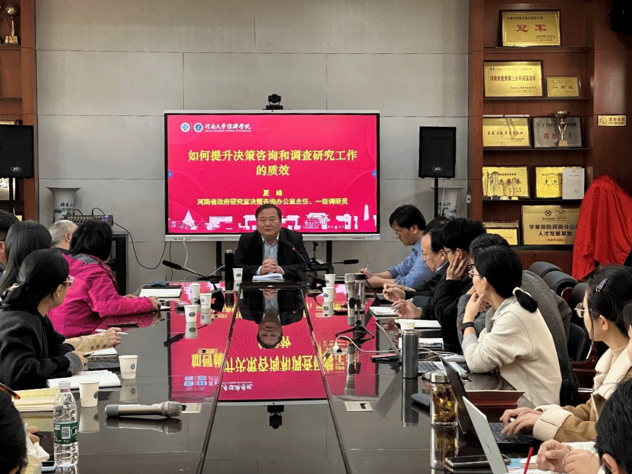 讲座伊始,夏峰主任厘清了调查研究和决策咨询间相辅相成的关系,指出调查研究是决策咨询的基石,并结合实际工作经历详细介绍了如何提升调查研究和决策咨询能力。针对如何进行决策咨询选题,夏峰主任认为应聚焦客观规律和河南省情,并向在座师生传授了怎样成为一名好的决策咨询工作者。最后,夏峰主任对RM365英国官网的决策咨询和调查研究工作提出建议,希望RM365英国官网做到“自成体系、心中有数”,在擅长领域打造核心竞争力,胸怀天下,务求实效,讲好河南发展故事。