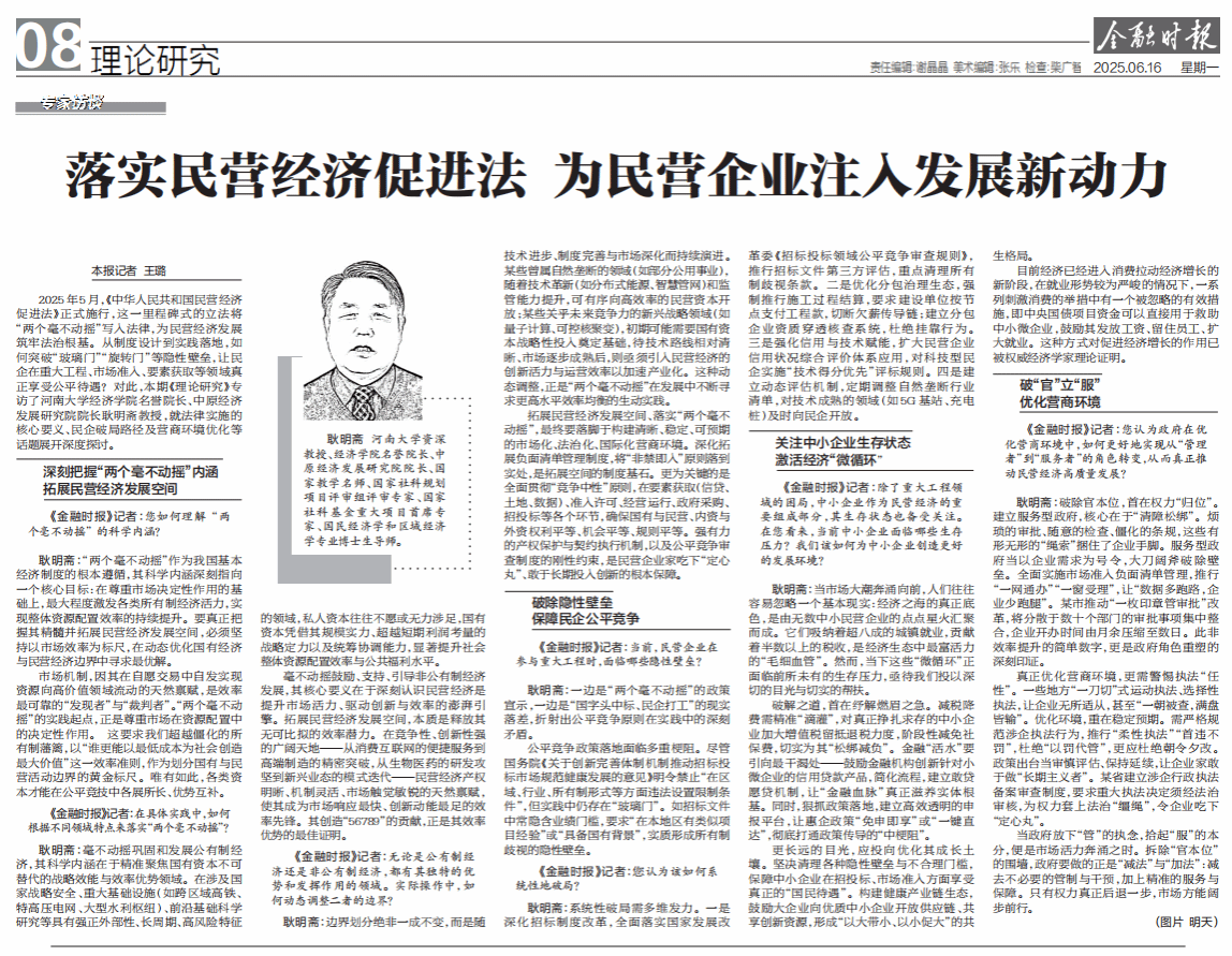 《金融时报》公司资深教授、名誉经理耿明斋接受媒体专访,解读《中华人民共和国民营经济促进法》